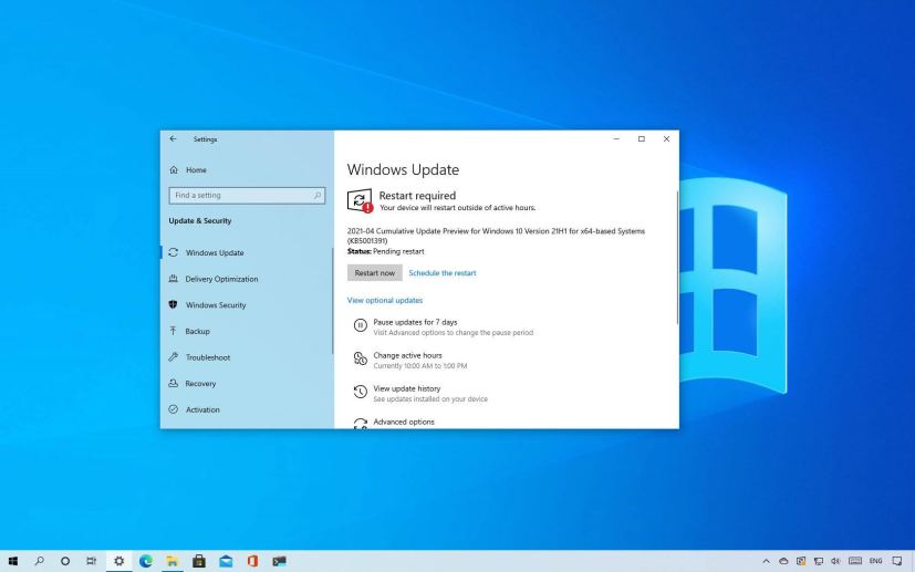 Then you can install Windows 10 21H1 going to Settings > Update & Security > Windows Update, click the Check for updates button, and then under the “Feature update to Windows 10, version 21H1” section, click the Download and install option.