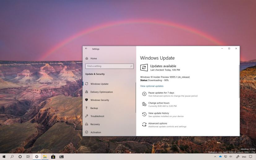 Although there are no ISO files for Windows 10 build 18995, the update is available immediately through the Fast ring. This preview build will download and install automatically on your device, but you can always force the update from Settings > Update & security > Windows Update, and clicking the Check for updates button.