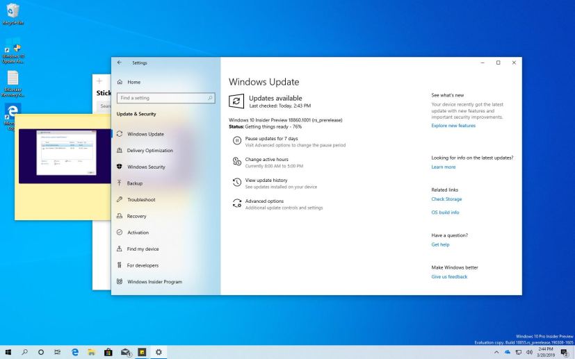 Although there are no ISO files for Windows 10 build 18860, the update is available immediately through the Fast ring. This preview build will download and install automatically on your device, but you can always force the update from Settings > Update & security > Windows Update, and clicking the Check for updates button.