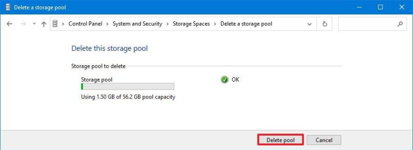 Once you complete the steps, the storage space will be deleted along with the data, the drives will be removed from the pool, and the pool will no longer be available on the device.